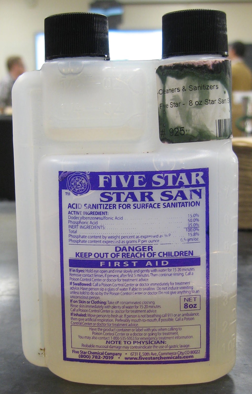 The acid sanitizer used to sterilize the siphon and carboy. You want to wear gloves to protect your skin.